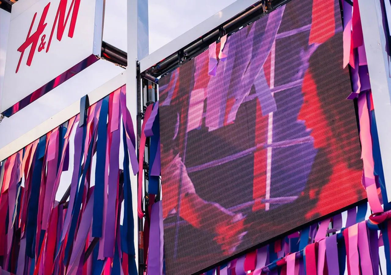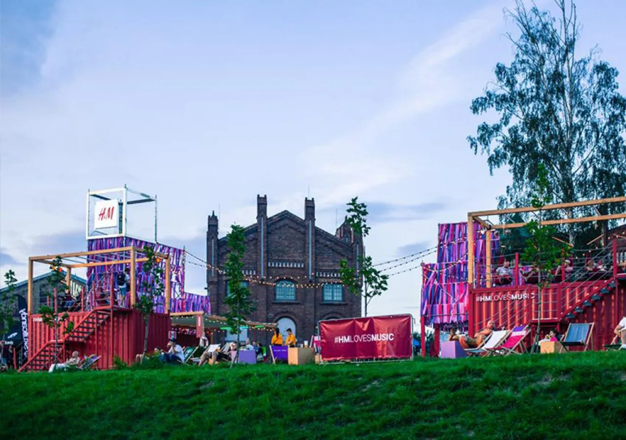 Pawilon dla H&M w swojej formie nawiązywał do festiwalowej swobody, wolności. Moda festiwalowa często nawiązuje do hipisowskich stylizacji, dlatego punktem wyjścia dla projektu stały się warsztaty z możliwością personalizowania odzieży w formie naszywek - sztandarowego symbolu mody z lat 70-tych. Wewnątrz strefy zaaranżowane zostały funkcje Foto Kiosku, w którym można było drukować indywidualne zdjęcia na tkaninie oraz punktu, w którym na ubrania naszywane były wydrukowane fotografie.