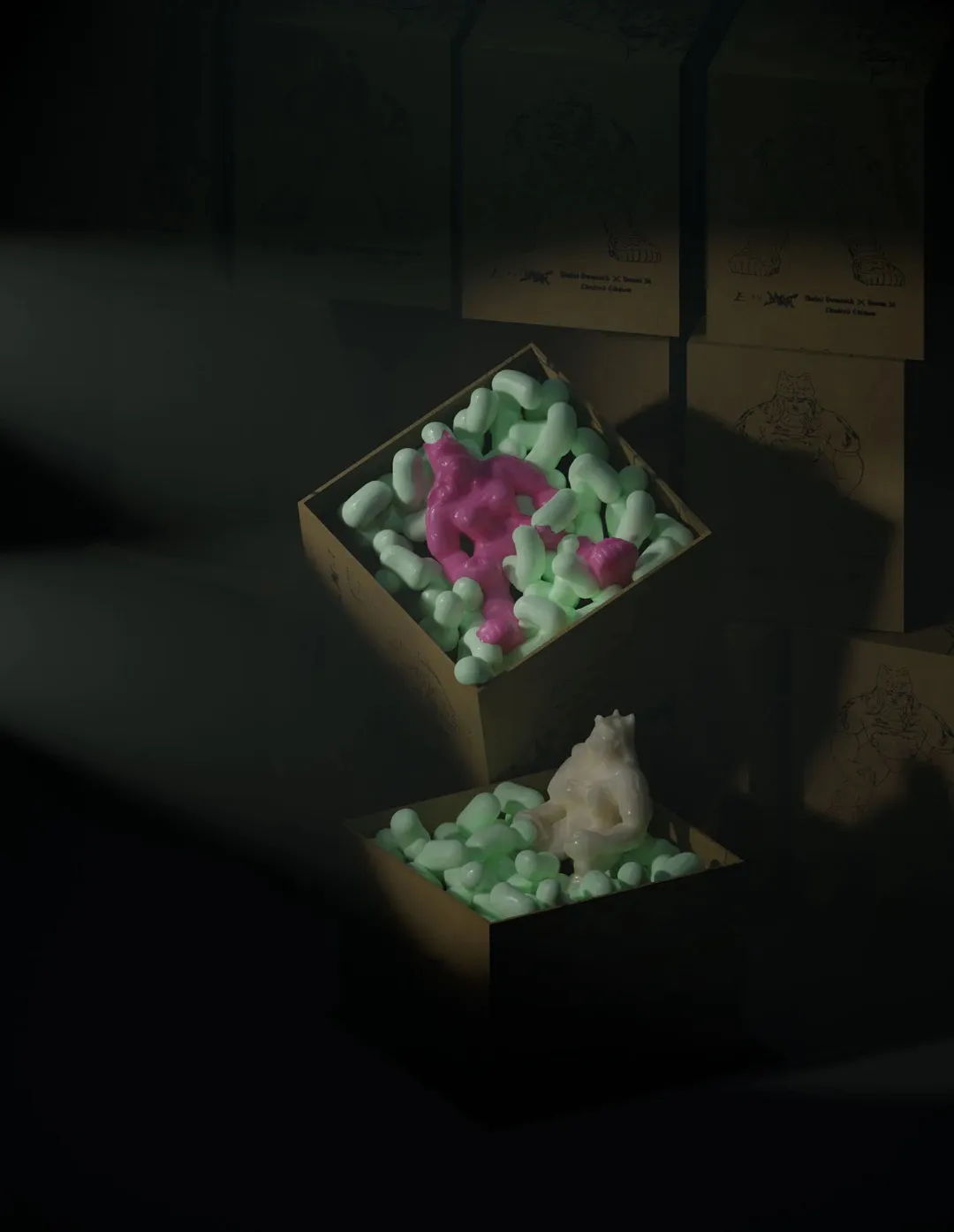 Świece powstały w dwóch wariantach kolorystycznych - klasycznej bieli o zapachu runa leśnego, oraz żywym, fluorescencyjnym różu o zapachu gumy balonowej. Każda ze świec została zapakowana wraz z serią plakatów i pocztówek, podpisanych i ponumerowanych przez autorów.